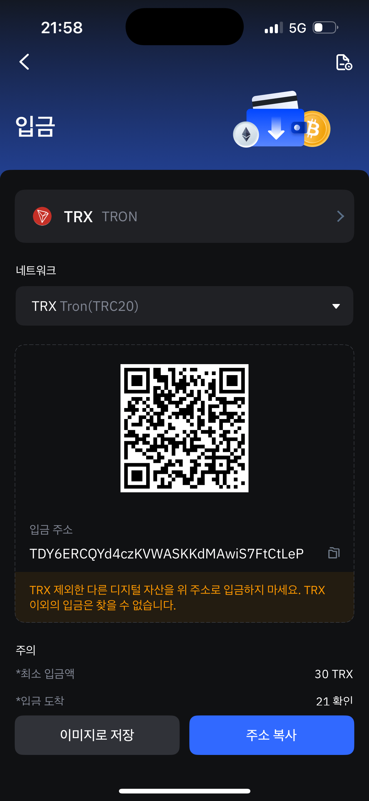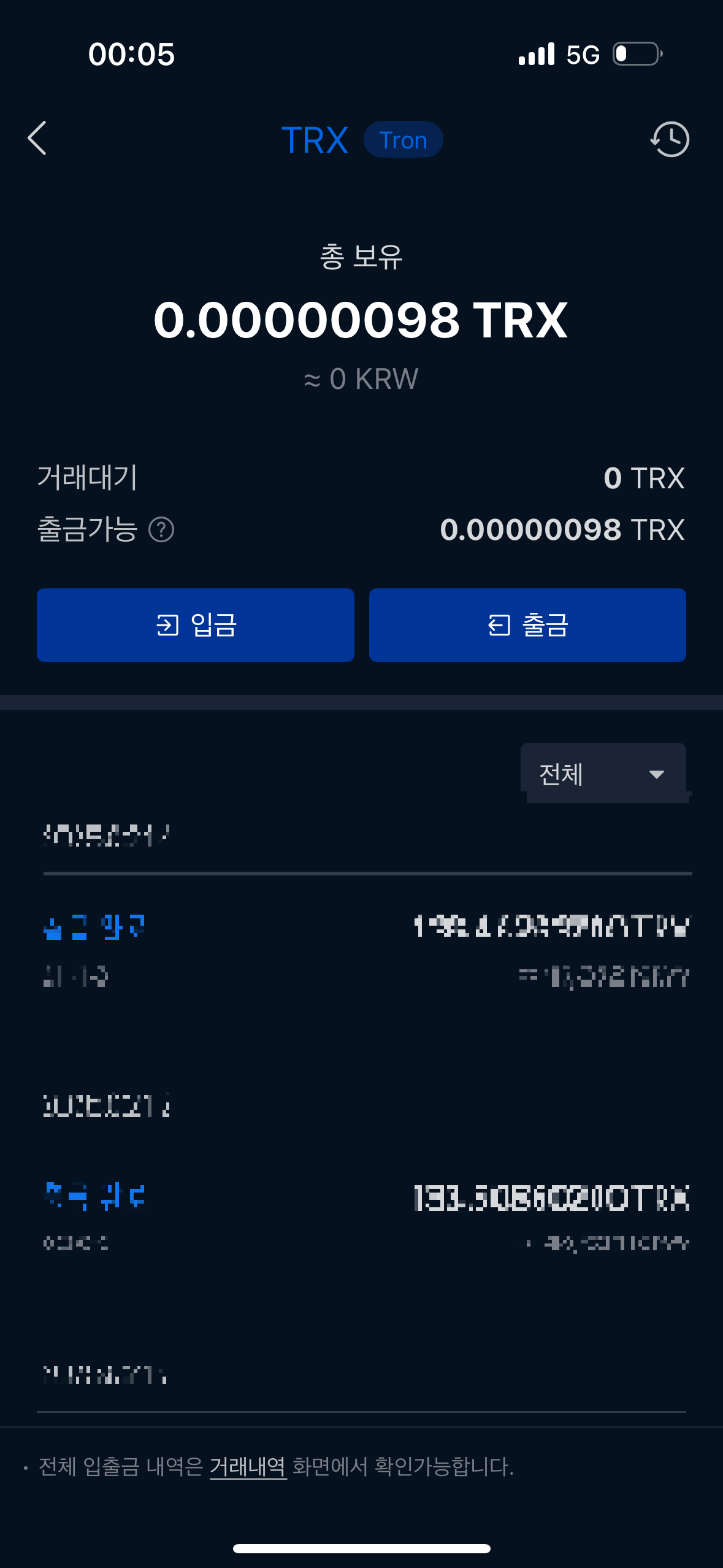 -> TRX 입금 우측 상단 공유 버튼 클릭