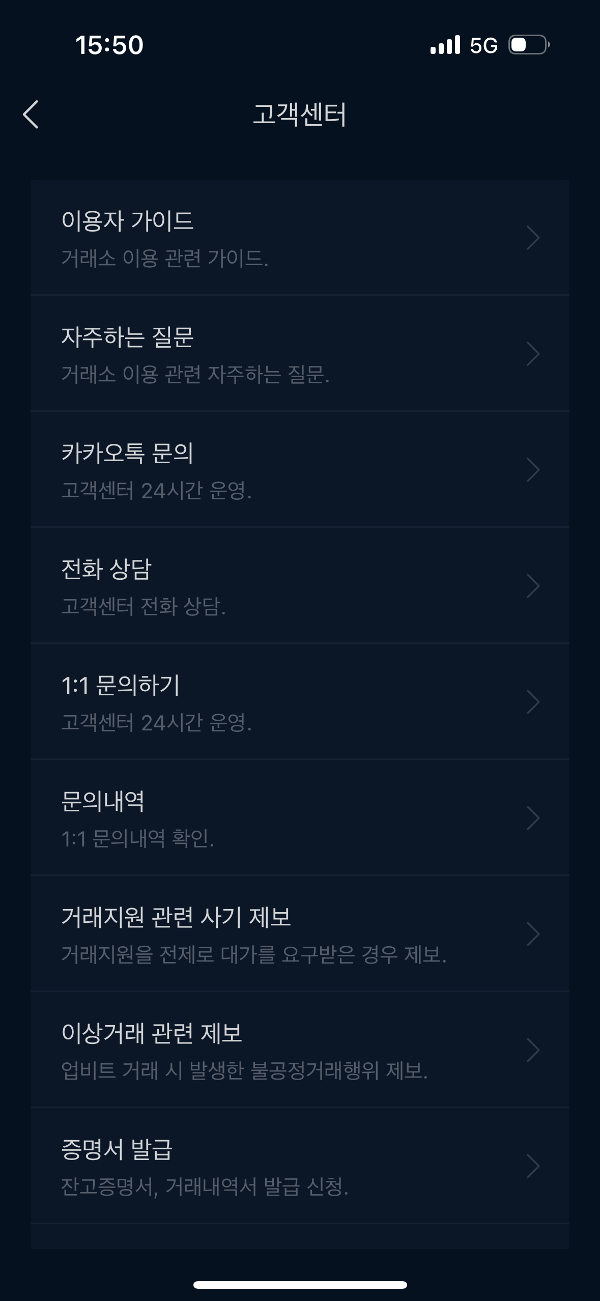 업비트 우측 상단 헤드셋 버튼 (고객상담)