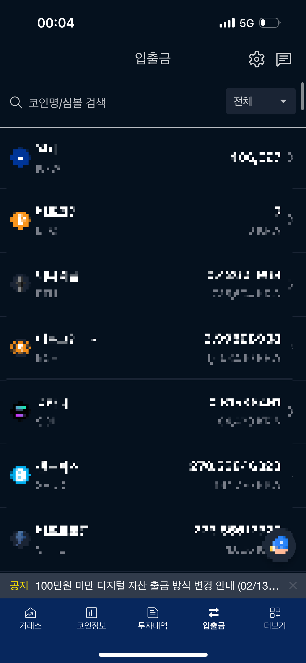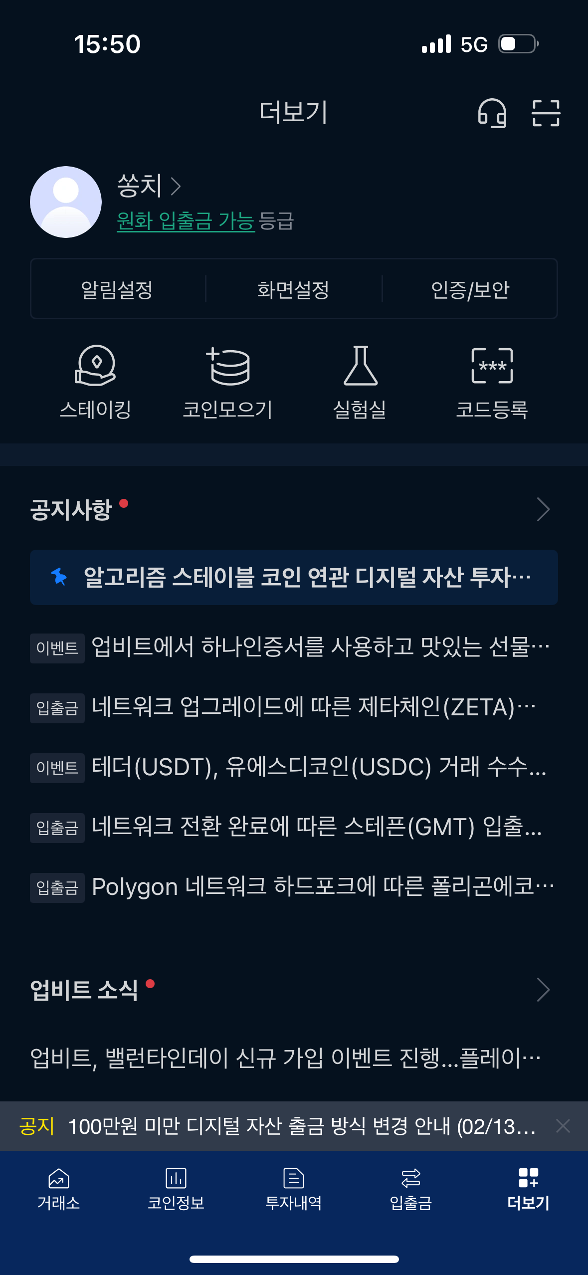 2/13부터 업비트로는 입출금이 불가합니다.